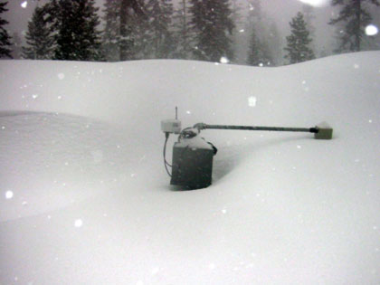 Record snowfalls, like this one on April 8, 2005, occasionally buried the Sensor Web pods, requiring the mounts to be raised.