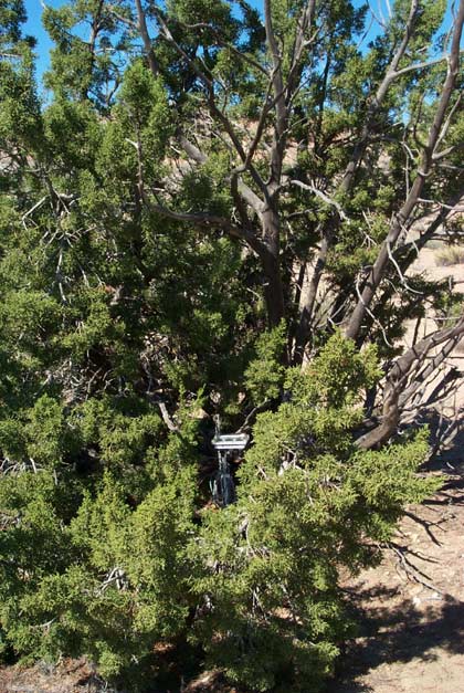 Juniper tree (Juniperus monosperma) instrumented with Sensor Web pod 5.